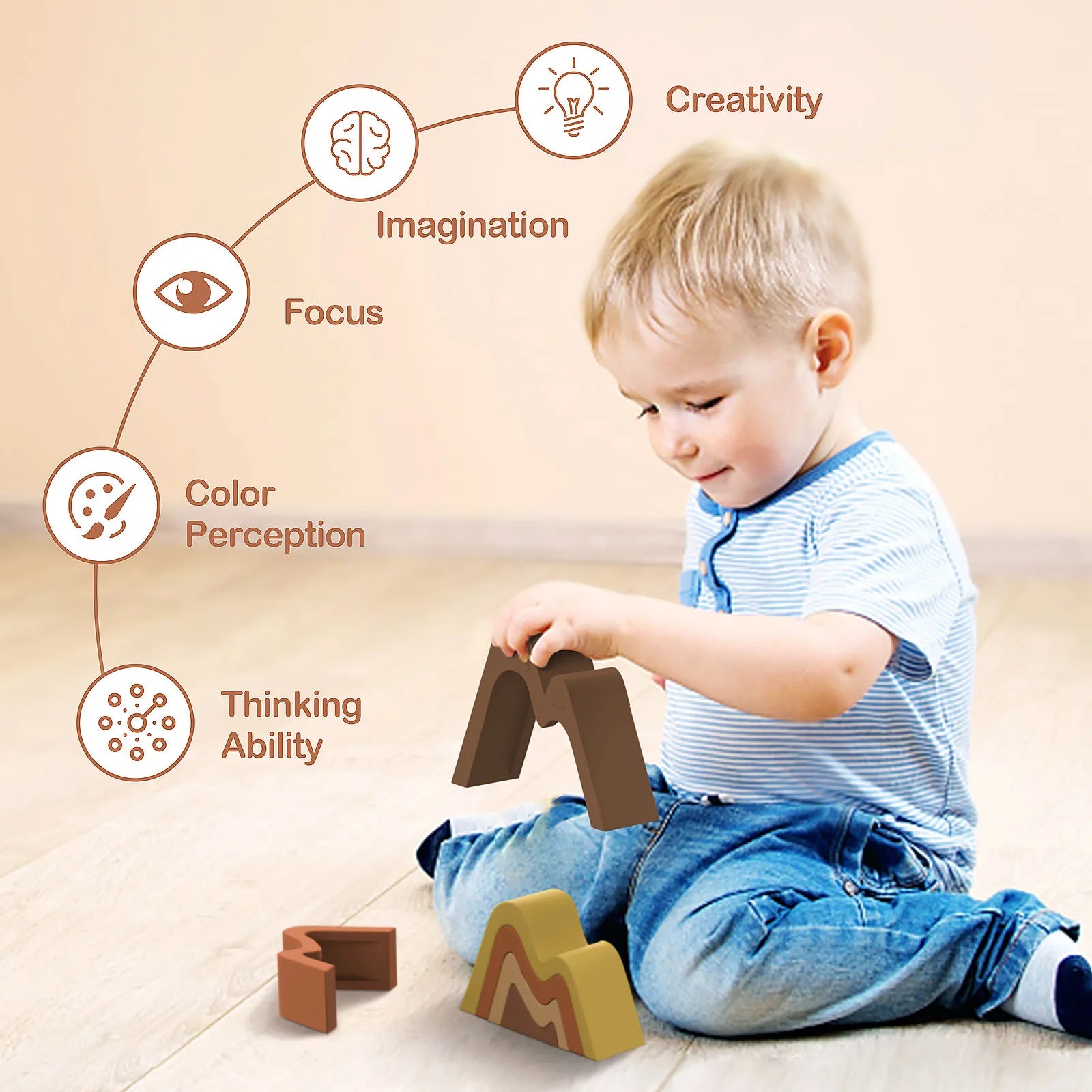 “Estos bloques acompañan a mi bebé en cada momento… ¡los aprieta, los mordisquea y nunca se cansa de apilarlos!” – María, mamá de Lucas (9 meses)